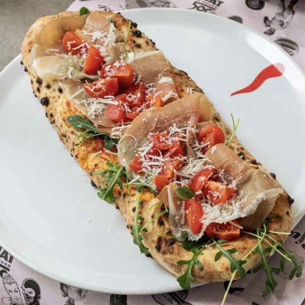 Mozzarella • Ricotta • Salami • Prosciutto cotto • Pfeffer Calzone